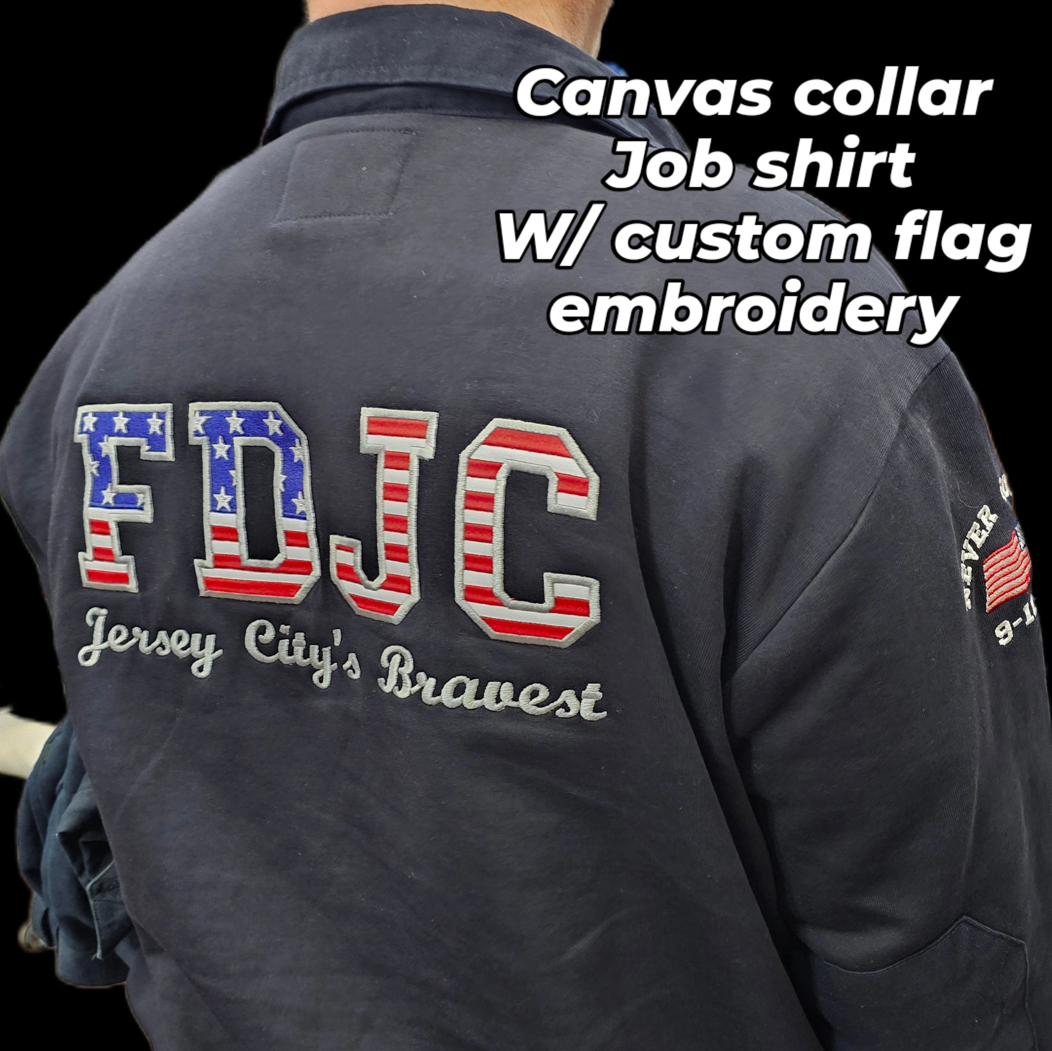 Includes everything in CUSTOM PLUS OUR EXCLUSIVE TRI-COLOR COMPANY OR DEPARTMENT DESIGN UP TO 98000 STITCHES ON BACK OR A COMBINATION OF LAYERED CUSTOM TWILL AND STITCH